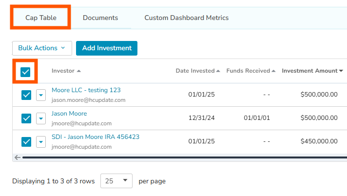 1. Click one or more investors to get started. If you would like to download all preferred return schedules in the class, select the check-all checkbox.