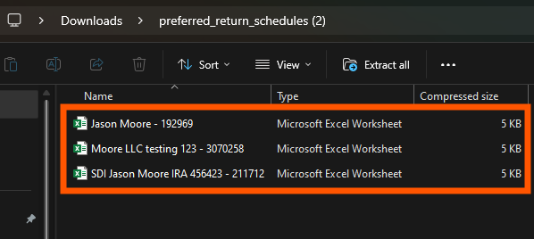 Exporting Preferred Return Schedules in Bulk