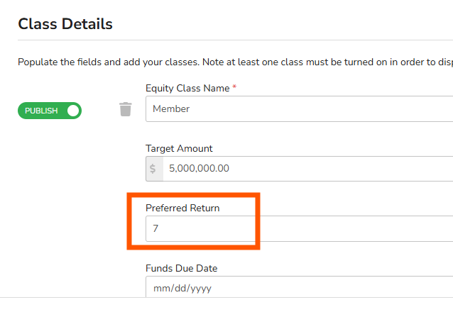 - The Preferred Return rate must be set at the class level from within the Edit Classes page (Class Details section).